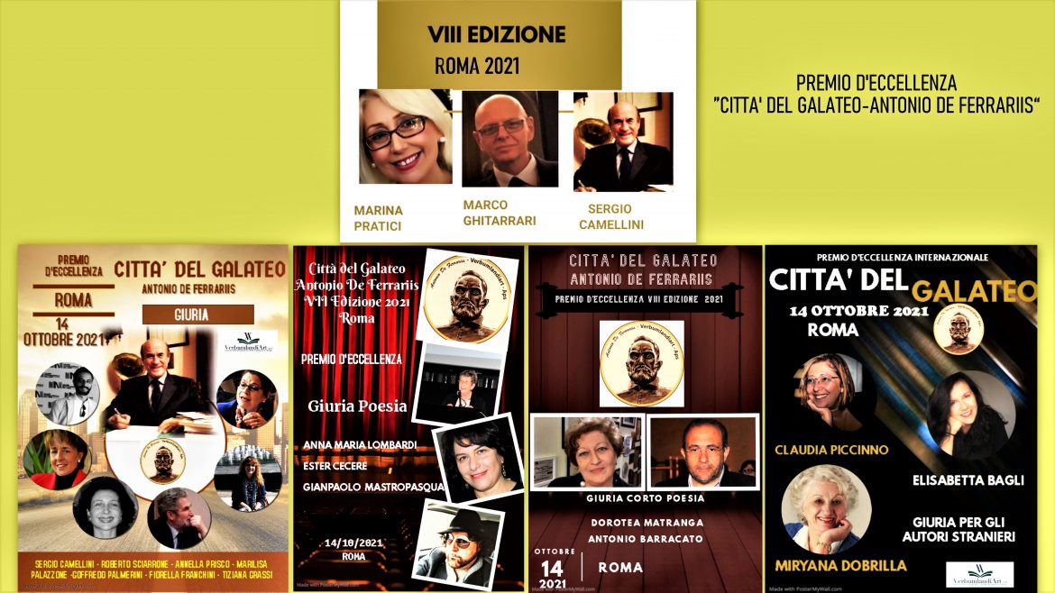 La Giuria per gli Autori stranieri, dopo attenta analisi delle numerose opere pervenute dall’estero, ha decretato i vincitori dell’8^ edizione del Premio d’Eccellenza internazionale “Città del Galateo – Antonio de Ferrariis” 2021. La comunicazione dei risultati viene anticipata per permettere agli Autori stranieri di organizzare il loro viaggio in Italia per la cerimonia di premiazione, confermata per il 14 ottobre 2021 a Roma. La presidente dell’associazione Verbumlandiart, mentre ringrazia la Giuria della sezione Estero per l’intenso e scrupoloso lavoro svolto, comunica peraltro che agli Autori sarà inviato un Attestato di partecipazione, se richiesto per email (premiocittadelgalateo@gmail.com). Qui di seguito le classifiche per Paese diramate dalla Giuria sezione Estero.