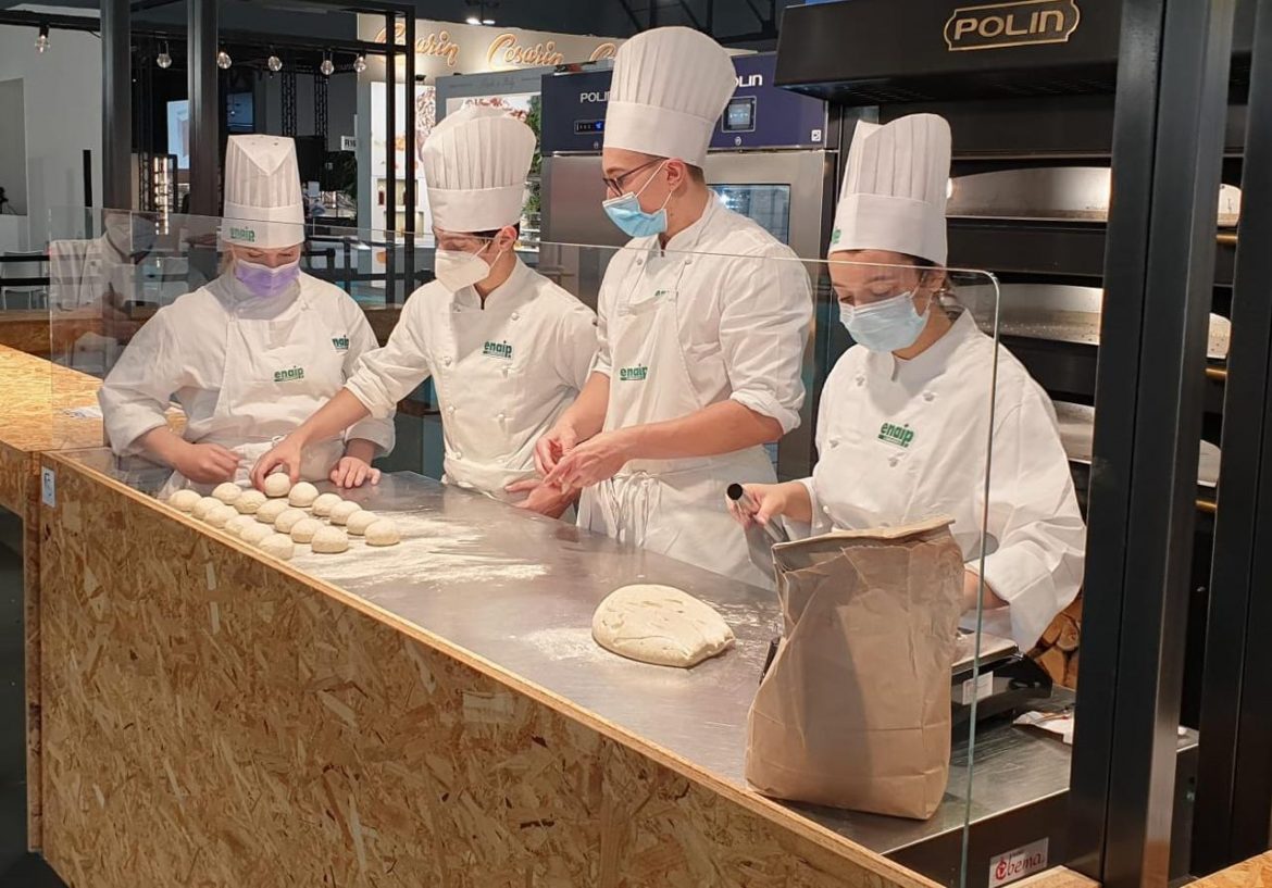 Milano, 26 ott. (Labitalia) – Grande successo oggi per i ragazzi del corso di pasticceria e panetteria di Enaip Lecco ad Host, a Milano, impegnati nella presentazione di un panino farcito legato al territorio. La sfida è stata lanciata dall’Associazione panificatori milanesi e i ragazzi della scuola sono stati pronti ad interpretare quanto veniva scritto nel regolamento: Sostenibilità, tipicità, legame col territorio, queste le principali regole per realizzare un panino con farcitura dal peso di 250g”Abbiamo realizzato un panino utilizzando tre farine care al nostro territorio, Grano tenero tipo 2, Saraceno e mais, siamo riusciti a trovare le coltivazioni e i mulini per avere queste farine autoctone; La Cascina Don Guanella, con cui abbiamo fatto un progetto sul pane, ci ha fornito Mais e saraceno, mentre dal molino Cazzaniga di Missaglia abbiamo preso la farina di grano tenero di tipo 2″ racconta Maddalena, una delle protagoniste “poi ci siamo concentrati sui processi, facendo sia dell’autolisi delle farine (processo con cui otteniamo farine più semplici da far lievitare e che trattengono più acqua) sia il poolish, un lievito liquido che rende il pane più croccante”.”Dopo aver fatto il pane abbiamo dovuto pensare al ripieno” prosegue Luigi, altro partecipante all’evento “siamo andati alla ricerca dei prodotti del territorio, volevamo un panino ricco, ma alla portata di tutti, utilizzando tagli non pregiati e carni non molto utilizzate. Così ci siamo rivolti al Marco Frison, dell’associazione pecora brianzola, che ci ha dato la carne che abbiamo cucinato con una lunga cottura, affinché si sfaldasse e rimanesse morbida, come avveniva in passato”.”Infine – racconta Niccolò – serviva l’accompagnamento per la carne, quindi ci siamo rivolti al caseificio Gildo ad Introbio, Valsassina, che ci ha fornito una splendida crema al formaggio di capra per accompagnare il nostro stracotto di pecora. Poi abbiamo aggiunto le cipolle, misticanza e un tocco acidulo con le fragole.”E’ stata una bella esperienza – conclude Francesca, la più piccola del quartetto – mio papà chef, ci ha aiutato nelle cotture delle carni e ci ha sostenuto per tutta la dimostrazione, facendo il tifo per noi. Volevo anche ringraziare il professore Crippa per aver creduto in noi e per averci portato a vivere una così bella emozione”.I ragazzi hanno incantato i panettieri di Milano, con il loro panino made in Lecco, suscitando ammirazione sia per la qualità degli ingredienti, che per la ricerca effettuata sul territorio: un panino semplice e completo, sostenibile e territoriale, che potrebbe essere tranquillamente proposto nelle diverse paninoteche della città. Proprio per farlo conoscere che i ragazzi della scuola di pasticceria e panetteria di Enaip Lecco stanno pensando di presentarlo alla stampa agli interessati e ai loro genitori nelle prossime settimane.