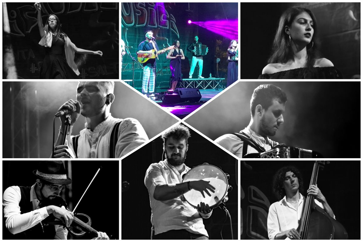 TERAMO – Taranta, pizzica e saltarello sono i ritmi mediterranei che risuonano nelle notti estive dell’Italia del Sud e non solo. Insieme alla musica e alle canzoni della tradizione popolare, narrano una cultura ancestrale e pur sempre attuale che si potrebbe riassumere nella gioia di vivere. I Musici, una giovanissima band abruzzese doc, da qualche anno (covid permettendo) porta in giro per l’Italia i colori di questa forza di suoni in movimento. Le danze riempiono le piazze piccole o grandi dei suggestivi borghi del mezzogiorno italico.