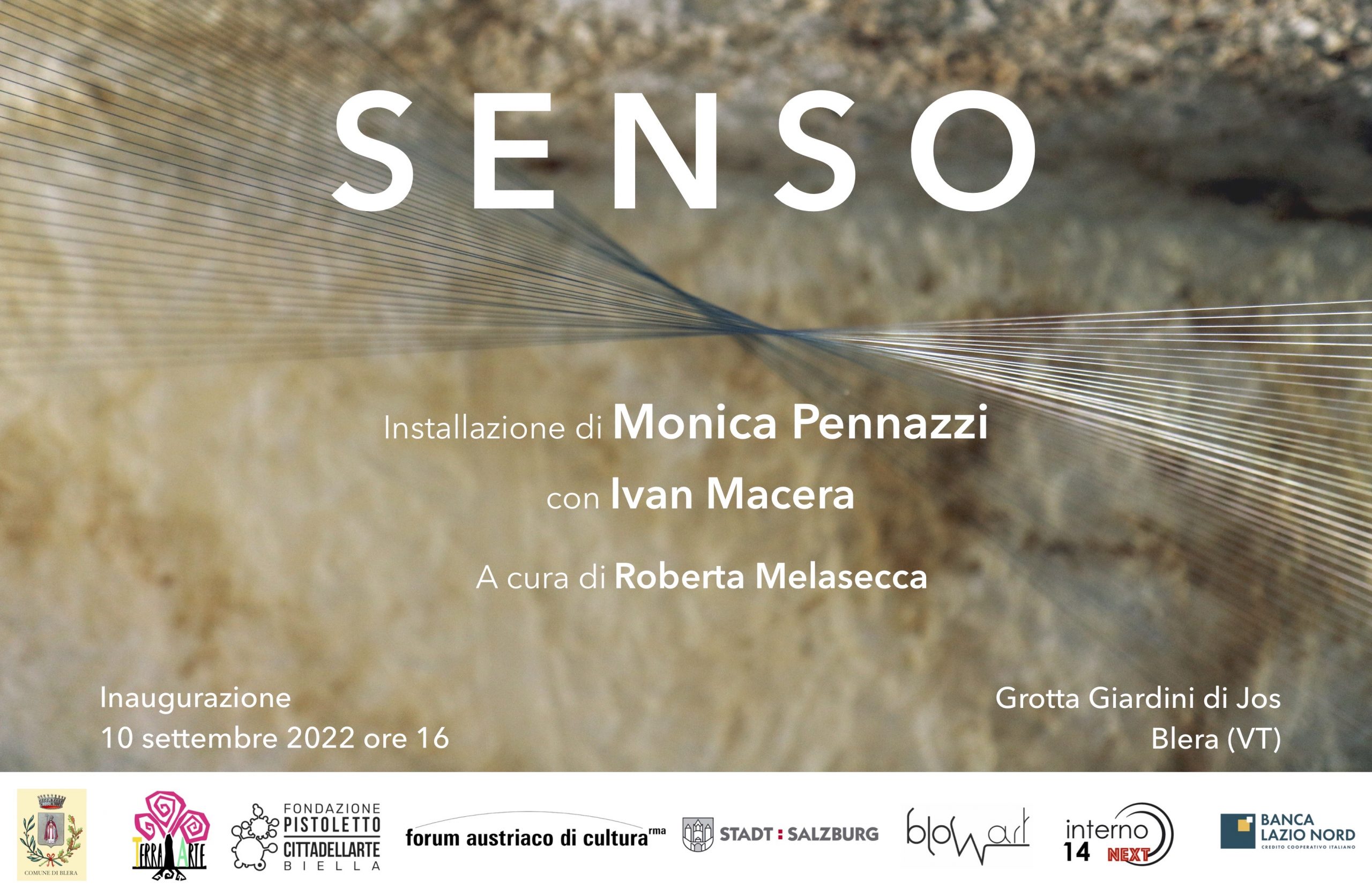 Terra-Arte presenta, all’interno dell’edizione 2022, nella grotta dei Giardini di Jos, l’installazione Senso di Monica Pennazzi in collaborazione con Ivan Macera, a cura e con un testo di Roberta Melasecca, con il supporto di blowart e Interno 14 next.