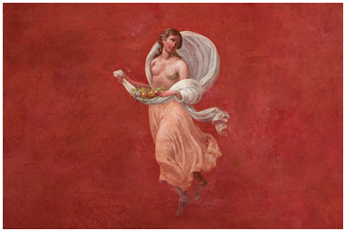 Proprio Raffaello, l’artista dandy amico personale di Chigi, ha consegnato al banchiere e a noi tutti capolavori assoluti come la Galatea, l’affresco in cui la bella ninfa è colta mentre si allontana dal suo corteggiatore su un fantastico cocchio tirato da delfini, a cui fa da contrappunto il tormentato Polifemo di Sebastiano del Piombo, e soprattutto la meravigliosa loggia di Amore e Psiche, trasformata in una pergola, dove la vegetazione del giardino si prolunga virtualmente all’interno, sul cui soffitto Raffaello e la sua bottega dipingono due finti arazzi con le scene del sontuoso Convito degli Dei e delle nozze di Amore e Psiche, culmine simbolico dell’intero ciclo pittorico ispirato all’Asino d’Oro di Apuleio. Originariamente questo era l’ingresso della villa alla quale si arrivava attraverso un ricco insieme di giardini che digradavano sul Tevere, ancora non irregimentato dai muraglioni, dando al complesso l’aspetto di un magnifico “viridarium”paragonato dai contemporanei alle più celebri dimore dell’antichità.