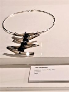 “Equilibrio versus Follia” 2023 è la preziosa creazione presentata da Gaia Caramazza a “VISIONARIES”, realizzata a mano, in argento con la tecnica della cera persa e la lavorazione a banchetto, che ripercorre e si ispira ai canoni della collezione presentata ad Altaroma nell’ambito di Showcase 2018.