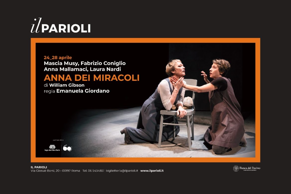 Dopo le date di Locarno e Asti, lo spettacolo “Anna Dei Miracoli” sarà in scena al Teatro Il Parioli – Costanzo di Roma con la seguente programmazione: mercoledì 24, venerdì 26 e sabato 27 aprile alle ore 21:00; giovedì 25 e domenica 28 aprile alle ore 17:00. Per l’acquisto dei biglietti, si rimanda al sito ufficiale del Teatro Il Parioli – Costanzo.