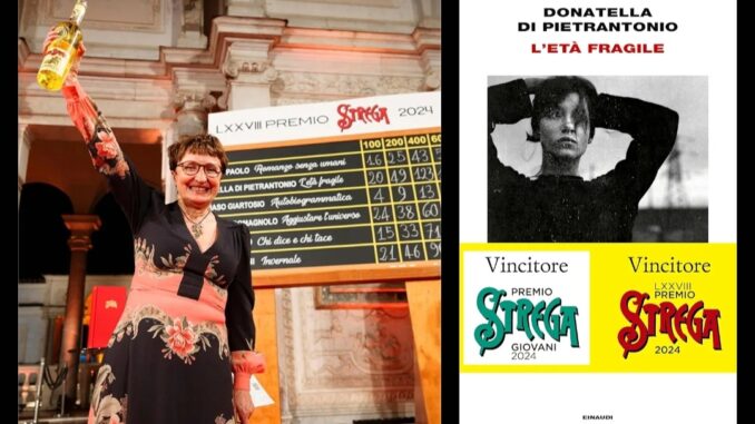 Donatella Di Pietrantonio vincitrice del Premio Strega 2024 per il suo romanzo “L’età fragile” edito da Einaudi. Con 189 voti.