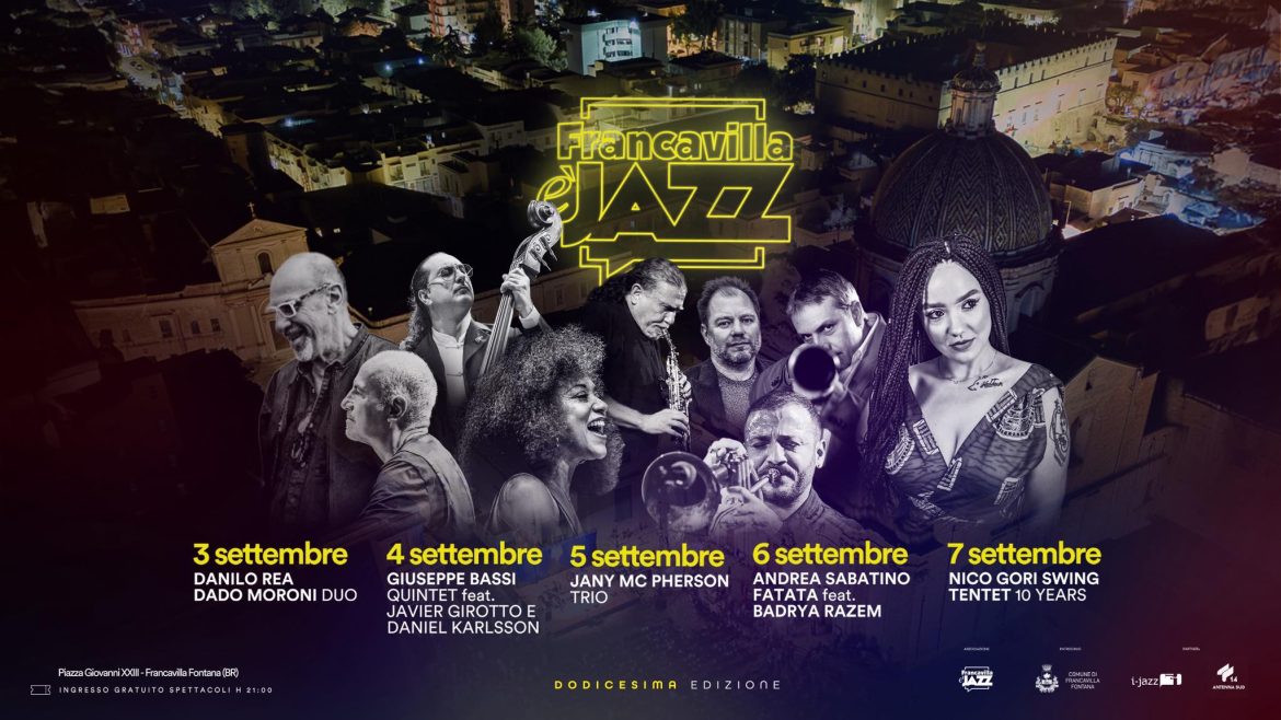 Cresce sempre più l’attesa per la dodicesima edizione di Francavilla è Jazz (Francavilla Fontana, provincia di Brindisi), festival ormai riconosciuto a livello nazionale diretto da Alfredo Iaia, brillantemente coadiuvato dal responsabile organizzativo Roberto Passaro,e reso possibile grazie all’Amministrazione Comunale di Francavilla Fontana e al contributo degli sponsor privati. Piazza Giovanni XXIII sarà il palco di tutti i cinque concerti programmati per quest’anno, da mercoledì 3 settembre a domenica 7 settembre alle 21:00, a ingresso gratuito come da tradizione.