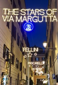 Le luci artistiche di Via Margutta intendono rendere omaggio alle celebri personalità che, nel corso dei