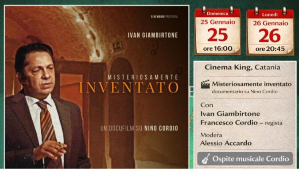 Catania, 9 gennaio 2026 – Il 25 e 26 gennaio il cinema King Multisala di Catania ospita Misteriosamente inventato, il docufilm dedicato all’artista siciliano Nino Cordio, diretto dal figlio Francesco Cordio.