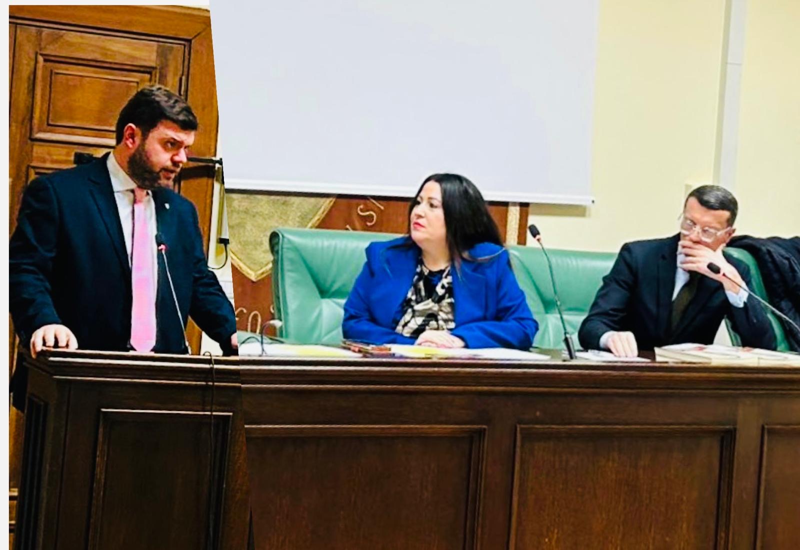 VITERBO – Un minuto di silenzio, dedicato alla figura illustre di don Pacifico Arcangeli, ha aperto i lavori in maniera solenne nella Sala “F. Benedetti” di Palazzo Gentili. L’incontro è stato tenuto dall’avvocato Giuseppe Fraticelli e dalla giornalista dott.ssa Francesca Maccaglia, autrice del libro “Don Pacifico Arcangeli, un’intensa gioventù”, pubblicato nel mese di ottobre 2025 e presentato giovedì 30 ottobre in prima nazionale ad Orte presso la Concattedrale di Santa Maria Assunta.