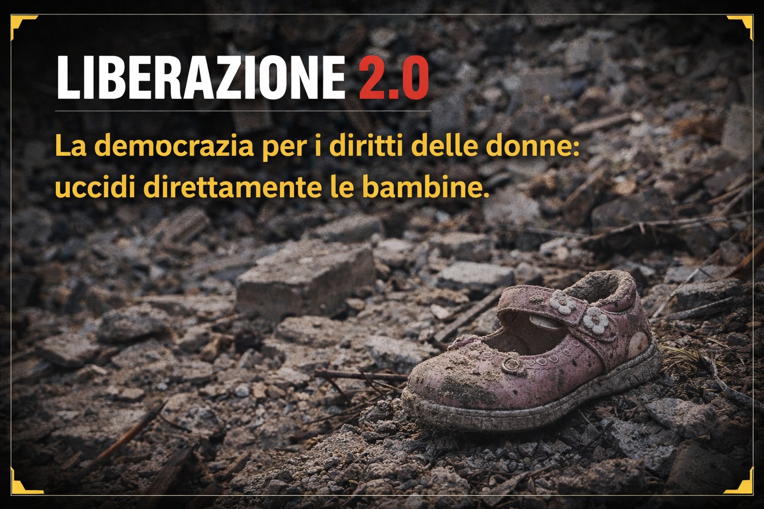 Perché è molto più semplice uccidere bambine che garantire loro la libertà. La democrazia occidentale funziona così: prima ti spiega che sei oppresso, poi ti bombarda per salvarti, e infine ti seppellisce per proteggerti dalle sofferenze.