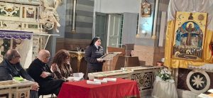 La Chiesa del monastero era piena di emozioni e ricca di religiosa commozione. Presenti studiosi cittadini credenti. Ha coordinato magistralmente i lavori la professoressa Marilena Cavallo autrice di un contributo nel libro. Sono intervenuti Salvatore Lenti presidente dell’Associazione Medici San Ciro e Pierfranco Bruni scrittore e direttore scientifico del progetto.